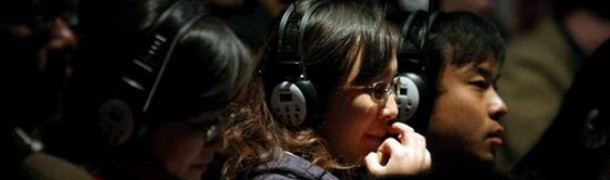 当晚演出开始前,工作人员向每位观众发放了接收耳机。张武和丰江舟设计出的全新视听感受令观众们感觉很新鲜。观众席和舞台之间被黑色框架和大片玻璃完全隔绝开。玻璃里面完全是个白色的空间,舞台背景向前45度倾斜,构筑出一个楔形的德国式极简空间。演员们时而头顶天花板,时而津贴玻璃,给人一种封闭压抑的感觉。观众们借助耳机接收声音,除了听到简单的对白,还有详细的解说:“监狱内,辛迪加四个人面对观众。弗兰茨背对着观众……”枪声、桌椅的吱呀声、裙摆沙沙声、脚步声等现场声都在耳机中被放大,还夹杂着故意制造出的噪音。